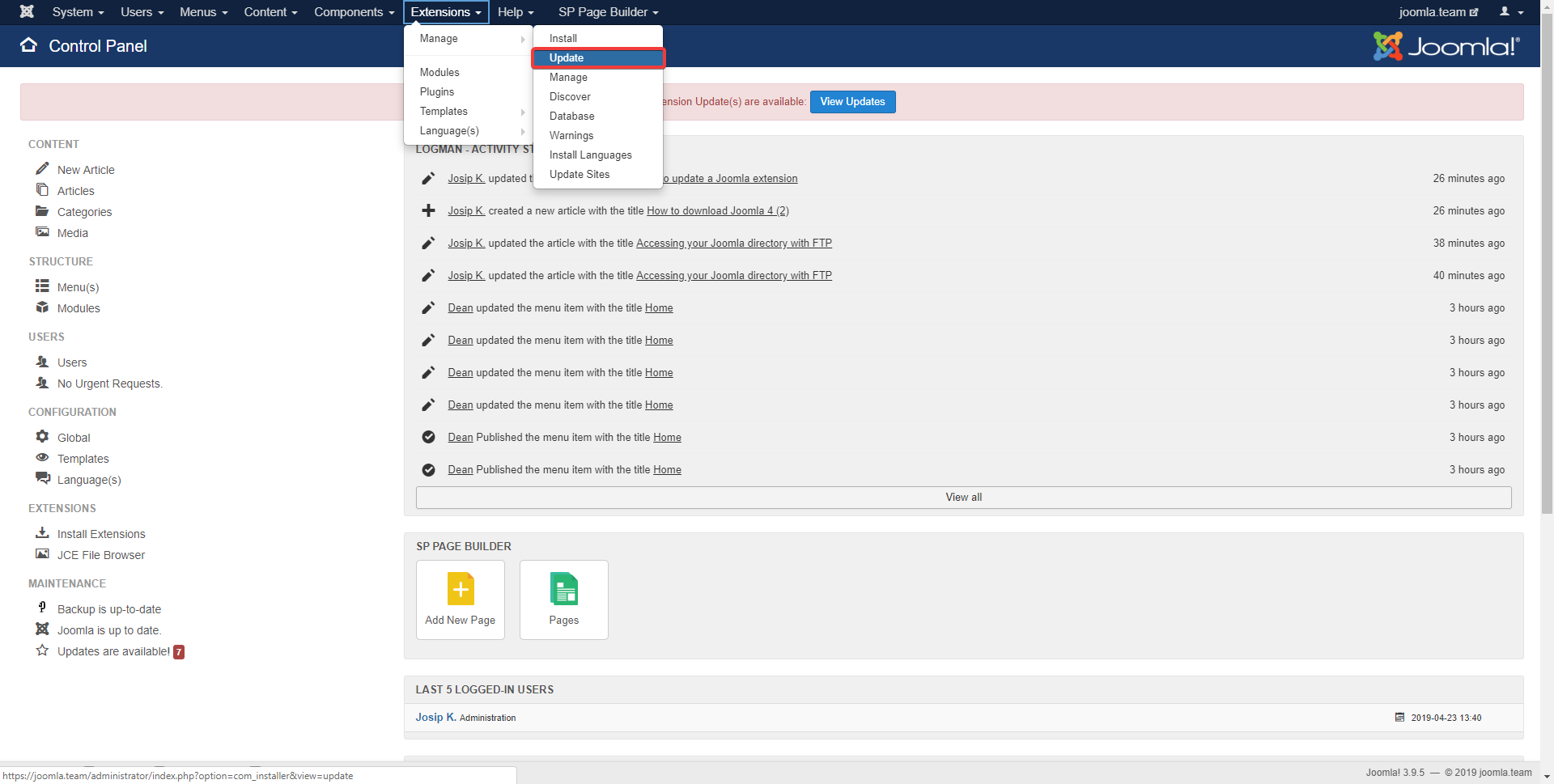 Wie kann ich eine Joomla-Erweiterung aktualisieren?