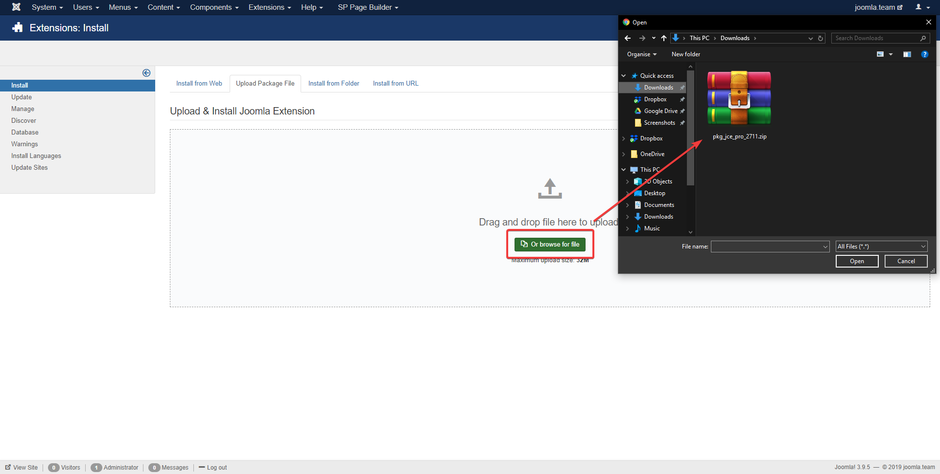 Das einfachste und gängigste Verfahren ist wie hier, Erweiterungen direkt über Joomla zu aktualisieren: