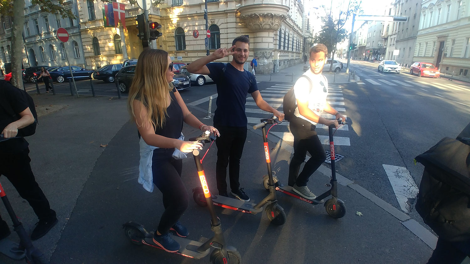 Das halbe Team raste in die eine Richtung, die andere Hälfte in die andere. Im Stadtzentrum zogen wir neugierige Blicke von Passanten auf uns - es ist nicht alltäglich, dass man ein Dutzend IT-Nerds auf Rollern vorbeifahren sieht.