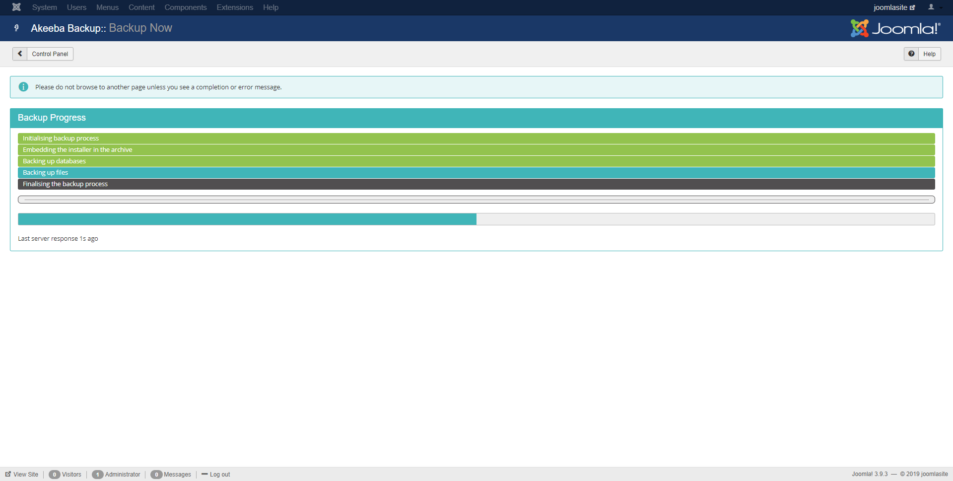 Wir empfehlen dringend das regelmäßige Erstellen von Backups Ihrer Joomla-Seite. Falls irgendwann etwas mit Ihrer Webseite schief gehen sollte, können Sie ein kürzlich erstelltes Backup innerhalb von Minuten wiederherstellen.