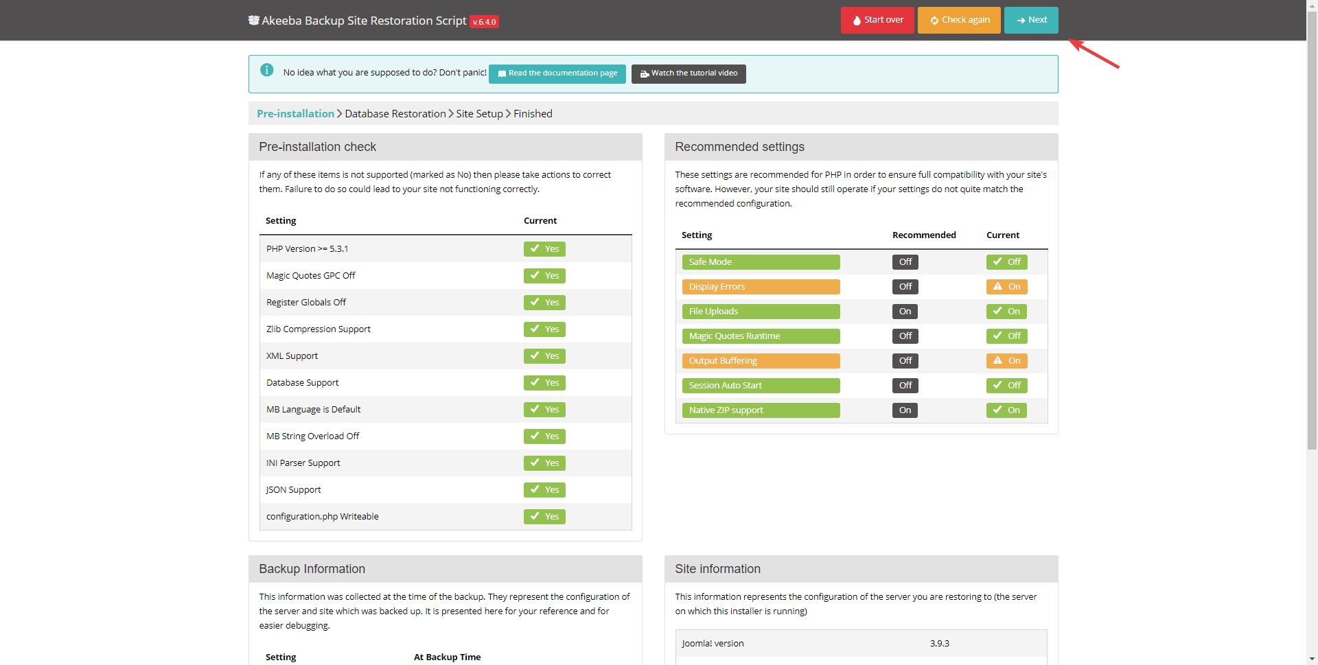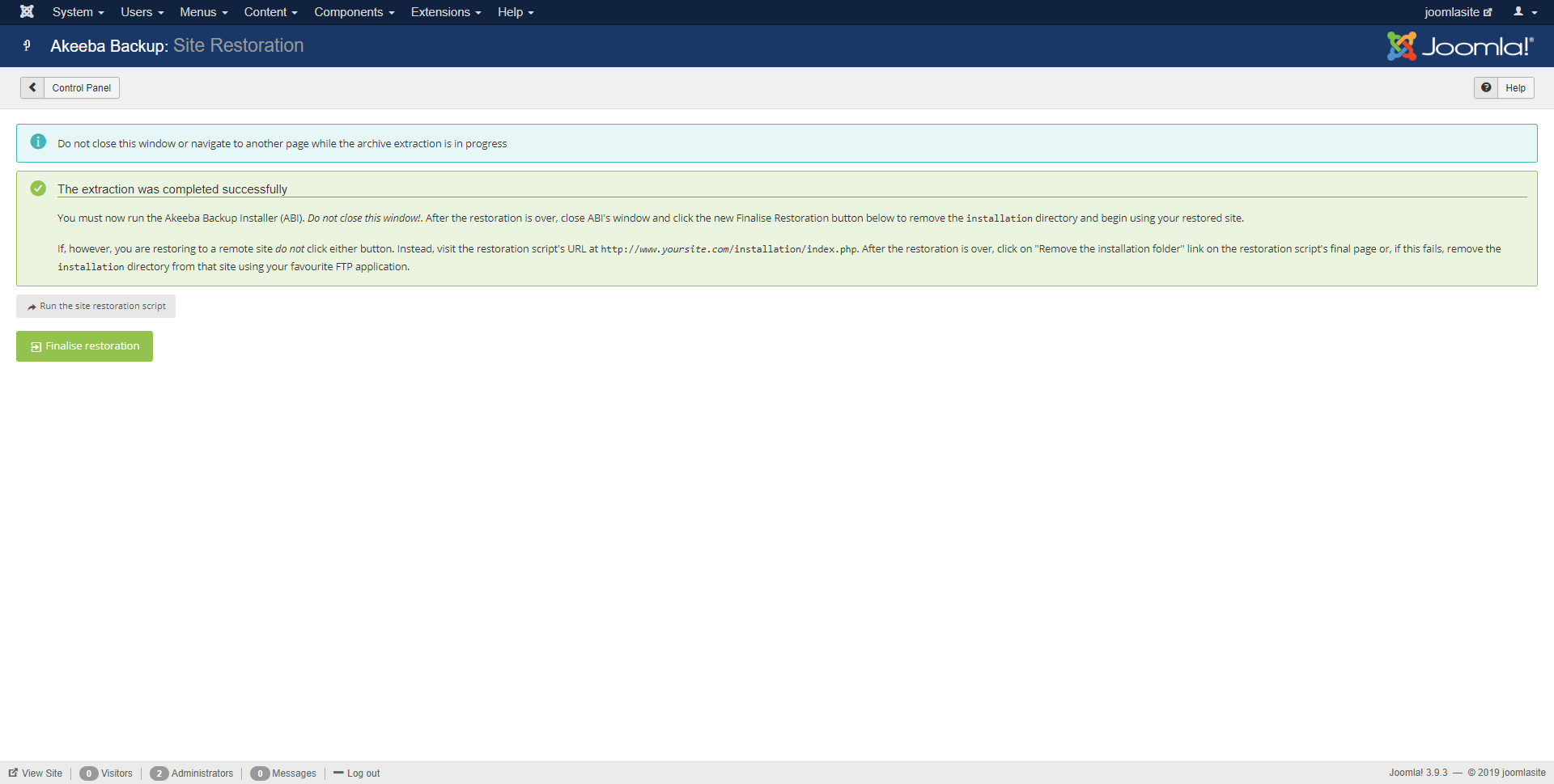 Die Wiederherstellung ist ziemlich einfach, vorausgesetzt Sie haben eine Backup-Datei, die mit Akeeba erstellt wurde.