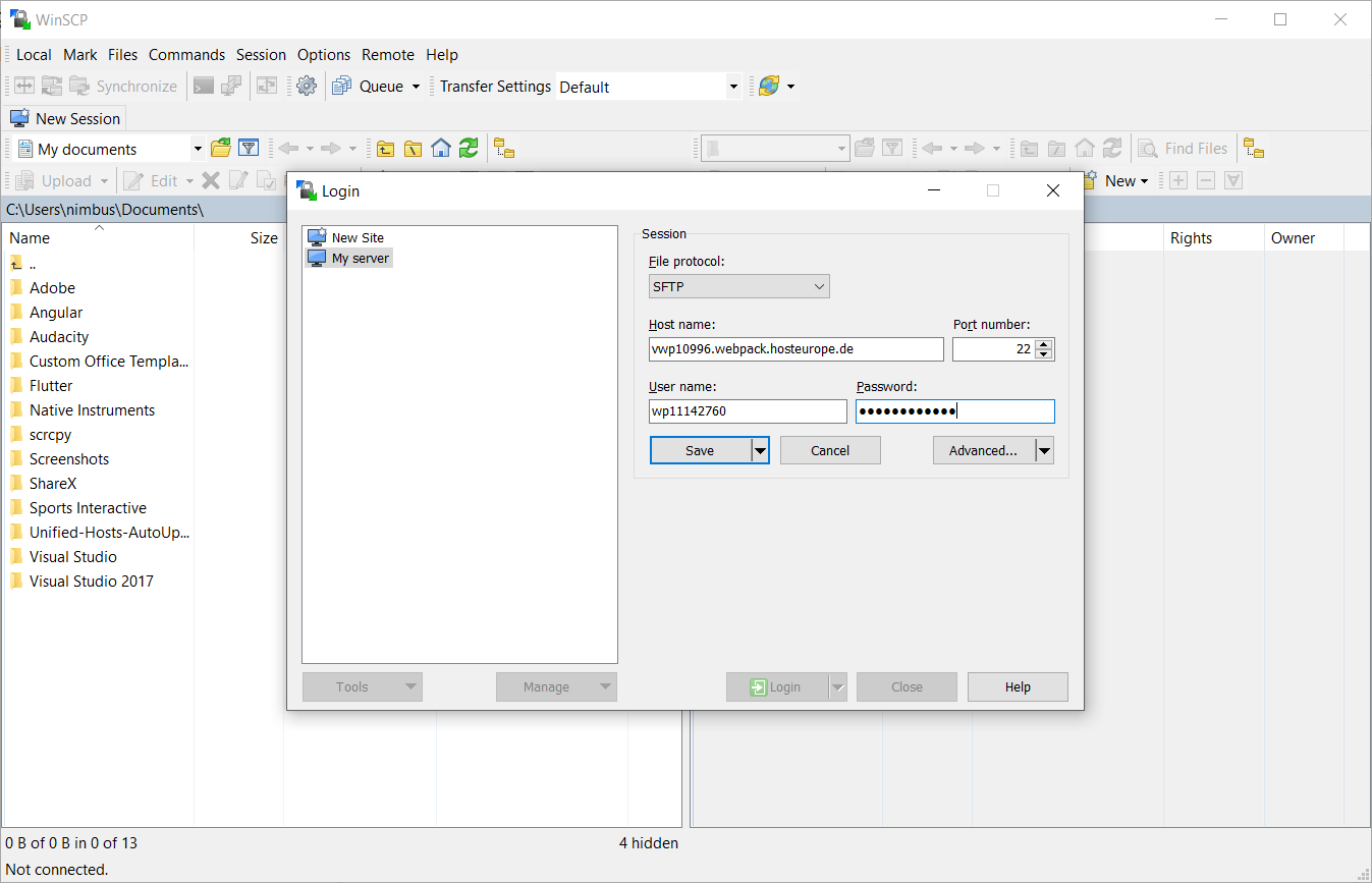 ...öffnen wir also WinSCP und verbinden uns mit Ihrem Server!